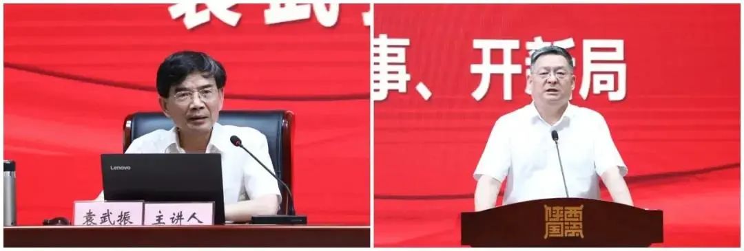 7月16日,陜西省委宣講團走進省國資委系統宣講習近平總書記“七一”重要講話精神。省委宣講團成員、西安郵電大學馬克思主義學院院長、二級教授袁武振作宣講報告,省國資委黨委書記、黨史學習教育領導小組組長劉斌主持報告會并講話。